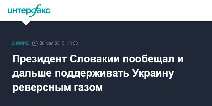 Москва. 20 мая. INTERFAX.RU - Президент Словакии Андрей Киска заявляет, что организованный из его страны реверсный поток природного газа в Украину функционирует, и Братислава готова поддерживать Киев в этом вопросе.