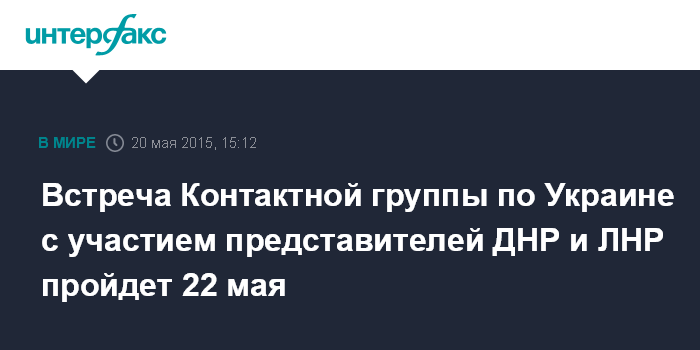 Встреча Контактной группы по Украине с участием представителей ДНР и ЛНР пройдет 22 мая