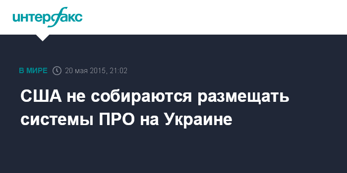 Москва. 20 мая. INTERFAX.RU - Вашингтон не намерен размещать системы ПРО на Украине, сообщила в среду на брифинге представитель госдепа США Мари Харф.