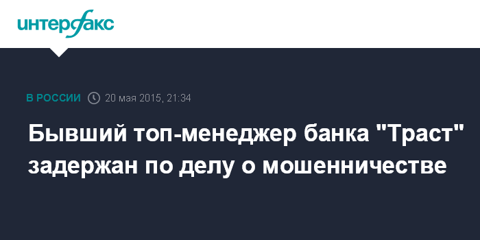 Ранее сообщалось, что в конце апреля было возбуждено уголовное дело о мошенничестве в отношении ряда лиц из числа руководства и сотрудников коммерческого банка "Траст".