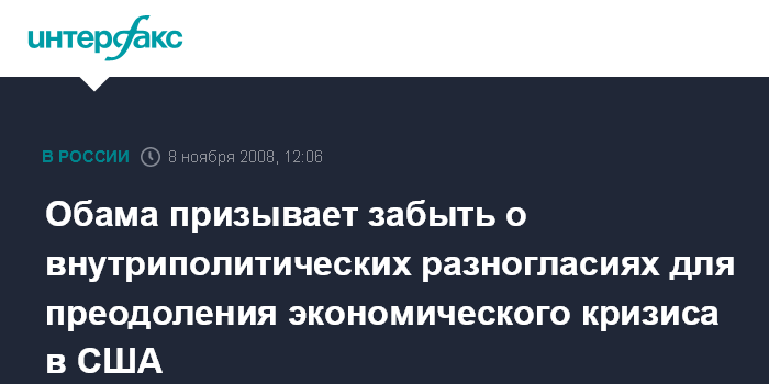 Обама призывает забыть о внутриполитических разногласиях для преодоления экономического кризиса в США