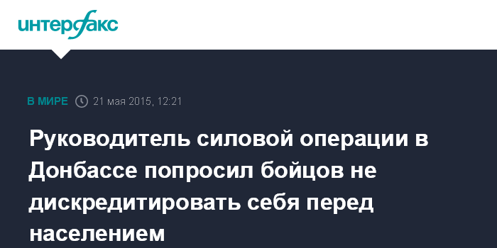Москва. 21 мая. INTERFAX.RU - Руководитель проводимой Киевом войсковой операции в Донбассе призвал личный состав военных формирований и правоохранительных органов не нарушать нормы поведения и не совершать противоправные действия в отношении местного населения.