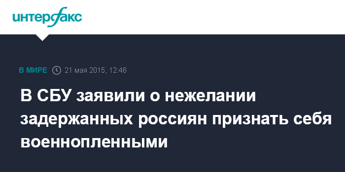 Москва. 21 мая. INTERFAX.RU - В Службе безопасности Украины заявили, что двое задержанных у луганского города Счастье россиян, которых в Киеве считают действующими военнослужащими России, признали, что их подозревают в совершении уголовных преступлений.