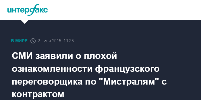 СМИ заявили о плохой ознакомленности французского переговорщика по "Мистралям" с контрактом