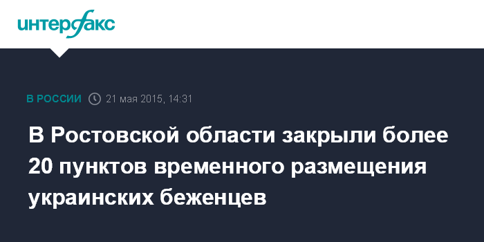 Москва. 21 мая. INTERFAX.RU - Власти Ростовской области в связи с уменьшением граждан Украины, нуждающихся в проживании в пунктах временного размещения, в апреле-мае закрыли 22 ПВР, сообщило в четверг управление информационной политики правительства региона.