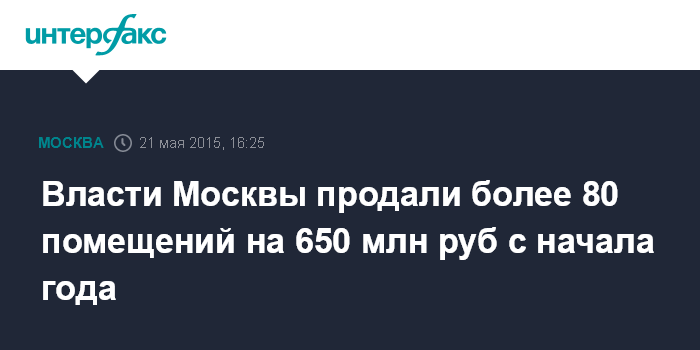 Власти Москвы продали более 80 помещений на 650 млн руб с начала года