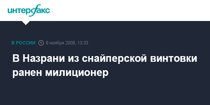 Москва. 8 ноября. INTERFAX.RU - Капитан милиции получил в субботу огнестрельное ранение на одной из улиц Назрани, сообщили агентству "Интерфакс-Юг" в правоохранительных органах города.