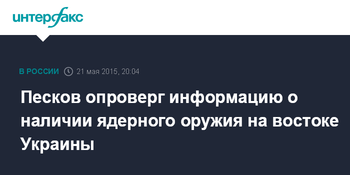 Песков опроверг информацию о наличии ядерного оружия на востоке Украины