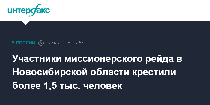 Москва. 22 мая. INTERFAX.RU - Участники духовно-просветительской благотворительной акции в Новосибирской области посетили 161 населенный пункт и крестили более 1,6 тыс. человек.