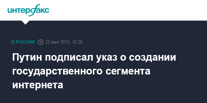 Москва. 22 мая. INTERFAX.RU - Президент РФ Владимир Путин подписал указ "О некоторых вопросах информационной безопасности Российской Федерации", который предполагает образование государственного сегмента интернета, следует из текста документа, размещенного на официальном портале правовой информации.