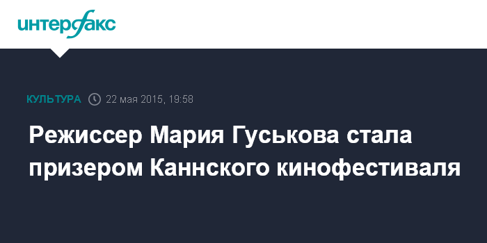 Москва. 22 мая. INTERFAX.RU - Молодой российский режиссер Мария Гуськова стала призером программы Каннского кинофестиваля "Синефондасьон", передает корреспондент "Интерфакса".