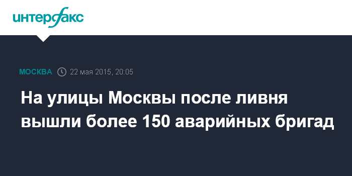 Москва. 22 мая. INTERFAX.RU - В диспетчерскую ГУП "Мосводосток" в пятницу после грозы поступило 90 заявок о скоплениях воды на улицах столицы, сообщили "Интерфаксу" в пресс-службе предприятия.