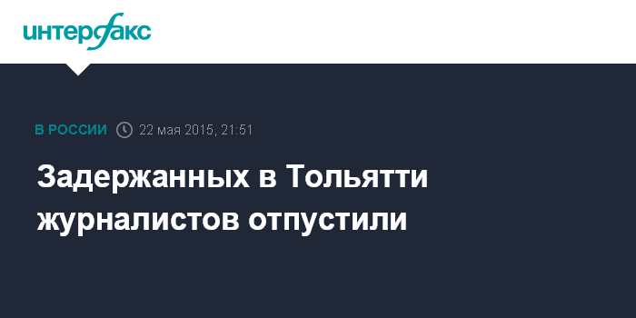 Москва. 22 мая. INTERFAX.RU - Задержанные в Тольятти журналисты отпущены после опроса в правоохранительных органах, сообщил один из них - корреспондент телеканала "Дождь" Тимур Олевский.