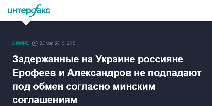 Задержанные на Украине россияне Ерофеев и Александров не подпадают под обмен согласно минским соглашениям