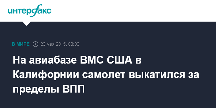 Москва. 23 мая. INTERFAX.RU - Самолет ВМС США выкатился за пределы взлетно-посадочной полосы, сообщает Associated Press.