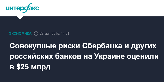 Москва. 23 мая. INTERFAX.RU - Риски Сбербанка и других российских банков на Украине оцениваются в $25 млрд, сообщил первый зампред правления Сбербанка Максим Полетаев журналистам в субботу.
