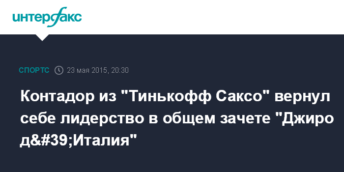 Благодаря показанному результату, Контадор вернул себе розовую майку лидера общего зачета. Идущий вторым в общем зачете итальянец Фабио Ару, занявший на 14-м этапе 29-е место, отстает от Контадора на 2 минуты 28 секунд.