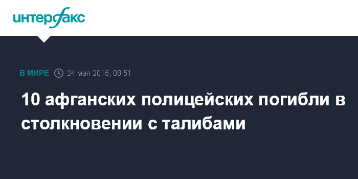 Москва. 24 мая. INTERFAX.RU - По меньшей мене 10 сотрудников полиции Афганистана погибли в столкновении с боевиками экстремистской группировки Талибан на юге страны, сообщило в воскресенье агентство Associated Press со ссылкой на местные власти.