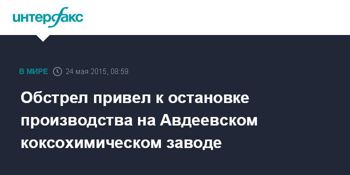 Москва. 24 мая. INTERFAX.RU - Авдеевский коксохимический завод (АКХЗ), входящий в группу "Метинвест", в субботу подвергся обстрелу, в результате чего было остановлено производство, сообщается в пресс-релизе компании.