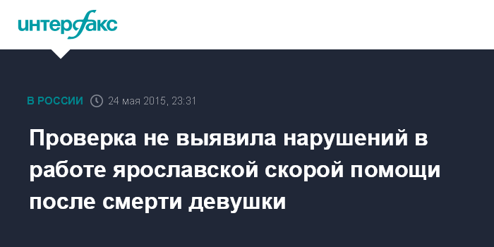 Москва. 24 мая. INTERFAX.RU - Минздрав РФ не обнаружил нарушений в работе скорой помощи в Ярославле, где в результате приступа астмы умерла 19-летняя девушка.