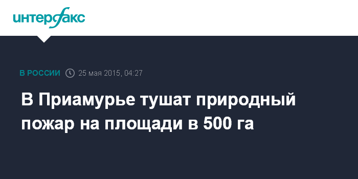 Москва. 25 мая. INTERFAX.RU - В Амурской области тушат пожар на площади в 500 га. Об этом сообщает областной Минлесхоз. Горит 235 гектаров лесной зоны и 270 гектаров нелесной зоны.