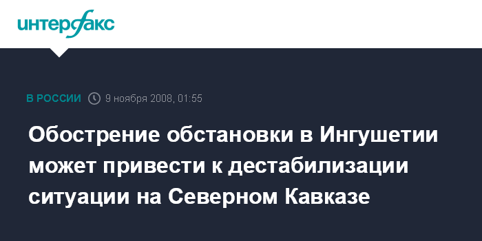Обострение обстановки в Ингушетии может привести к дестабилизации ситуации на Северном Кавказе