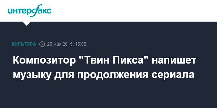 Москва. 25 мая. INTERFAX.RU - Композитор Анджело Бадаламенти, написавший музыку к сериалу Дэвида Линча "Твин Пикс", создаст саундтрек для его продолжения.