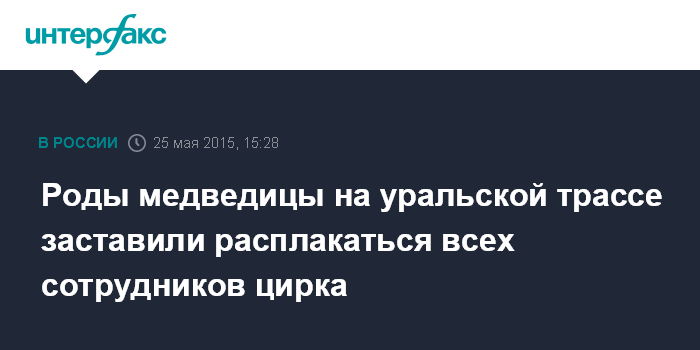 Москва. 25 мая. INTERFAX.RU - Артистка московского манежного цирка "Колос" медведица по имени Таня родила трех медвежат на трассе Екатеринбург - Каменск-Уральский, событие так тронуло артистов, что никто из них не смог сдержать слез, рассказал в понедельник агентству "Интерфакс" главный администратор цирка Василий Колос.