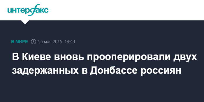 Москва. 25 мая. INTERFAX.RU - Двум россиянам Евгению Ерофееву и Александру Александрову, задержанным в Луганской области и проходящим курс лечения в Главном клиническом госпитале Минобороны Украины, в понедельник были проведены плановые операции, сообщил агентству "Интерфакс" информированный источник.