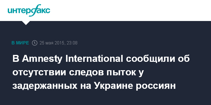 Москва. 25 мая. INTERFAX.RU - Украинская сторона не применяла пыток для получения показаний от задержанных в Донбассе Россиян Александра Александрова и Евгения Ерофеева, сообщили в международной неправительственной организации Amnesty International.