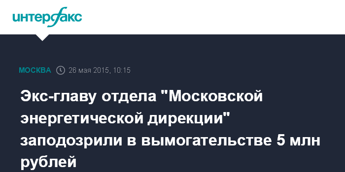 Экс-главу отдела "Московской энергетической дирекции" заподозрили в вымогательстве 5 млн рублей