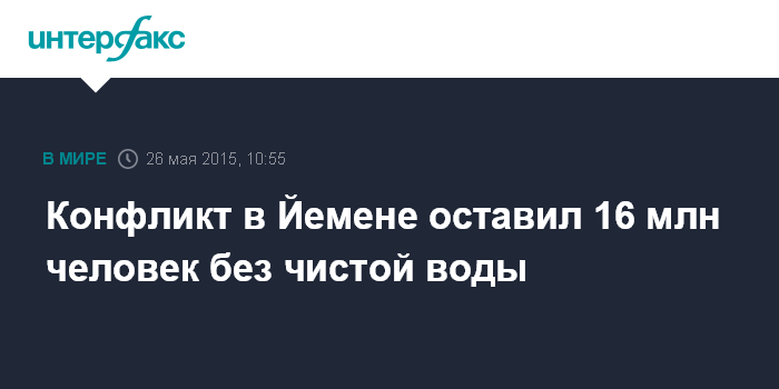 Москва. 26 мая. INTERFAX.RU - Почти две трети населения раздираемого конфликтом Йемена не имеют доступа к чистой воде, сообщает во вторник британская благотворительная организация Oxfam.