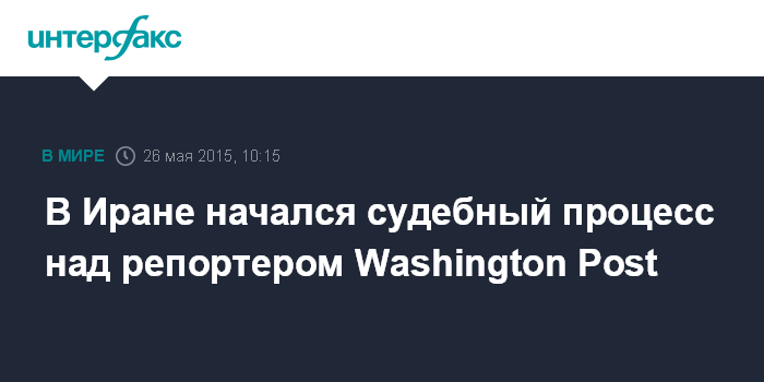 Москва. 26 мая. INTERFAX.RU - Судебный процесс над репортером американской газеты The Washington Post, задержанным в Иране в прошлом году, начался во вторник в Тегеране, сообщает агентство ИСНА.