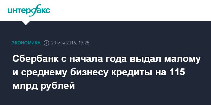 Москва. 26 мая. INTERFAX.RU - Сбербанк России с начала 2015 года выдал субъектам малого и среднего бизнеса (МСБ) кредиты на общую сумму порядка 115 млрд рублей (по данным на 19 мая).