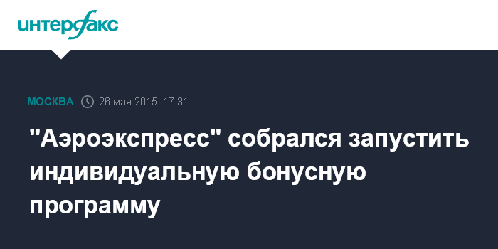 Москва. 26 мая. INTERFAX.RU - ООО "Аэроэкспресс" намерено запустить индивидуальную бонусную программу.