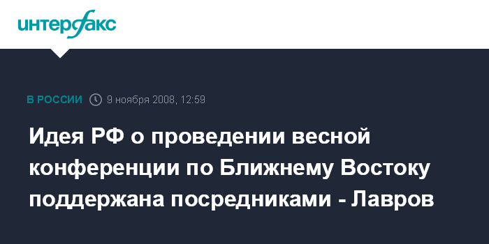 Шарм-эль-Шейх. 9 ноября. INTERFAX.RU - Квартет ближневосточных посредников поддерживает идею России о проведении международной конференции по Ближнему Востоку весной следующего года и рассчитывает на ее результативность.