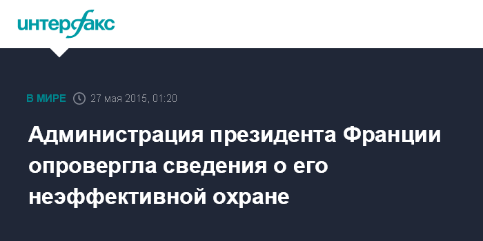 Москва. 27 мая. INTERFAX.RU - Появившиеся во французской прессе сообщения о плохой работе сотрудников службы охраны президента Франции Франсуа Олланда не соответствуют действительности, сообщила газета Le Figaro со ссылкой на представителей Елисейского дворца.
