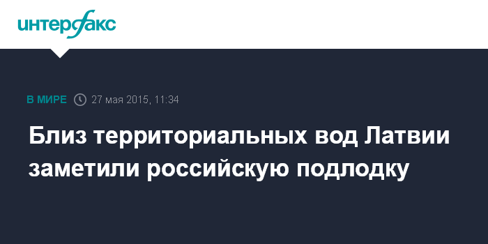 Москва. 27 мая. INTERFAX.RU - Национальные вооружённые силы (НВС) Латвии в среду засекли близ территориальных вод страны в Балтийском море подводную лодку Военно-морского флота России, сообщили агентству BNS в НВС.