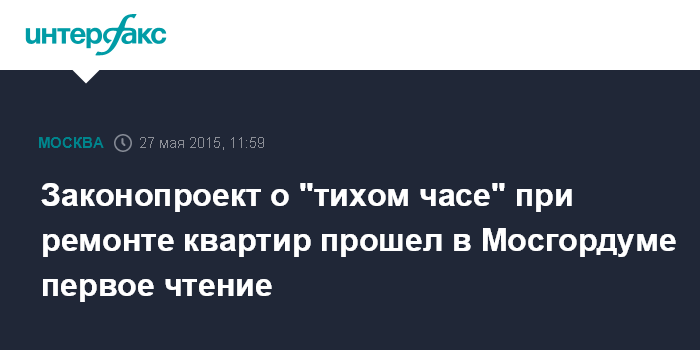 Как сообщил на заседании глава комиссии Мосгордумы по законодательству, регламенту, правилам и процедурам Александр Семенников, при ремонте квартир "многое зависит от согласия соседей". "Те, кто работают, днем будут обедать, а кто нет - могли бы вздремнуть", - объяснил необходимость введение "тихого часа" Семенников.