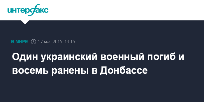 Москва. 27 мая. INTERFAX.RU - За минувшие сутки в зоне проведения силовой операции на юго-востоке Украины погиб украинский военнослужащий, сообщил представитель администрации президента по военным вопросам Александр Мотузяник.
