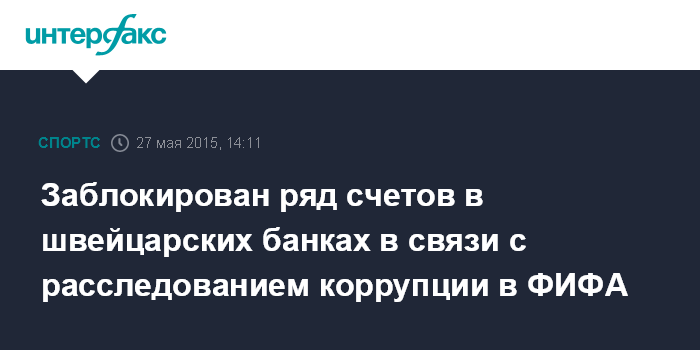 Заблокирован ряд счетов в швейцарских банках в связи с расследованием коррупции в ФИФА