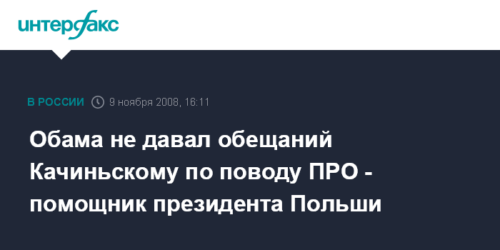 Обама не давал обещаний Качиньскому по поводу ПРО - помощник президента Польши