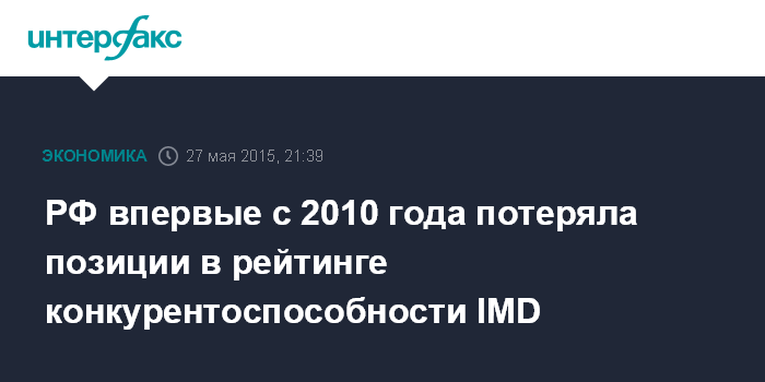РФ впервые с 2010 года потеряла позиции в рейтинге конкурентоспособности IMD