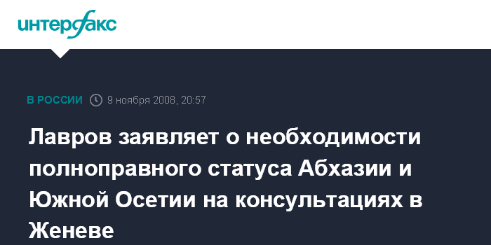 Лавров заявляет о необходимости полноправного статуса Абхазии и Южной Осетии на консультациях в Женеве