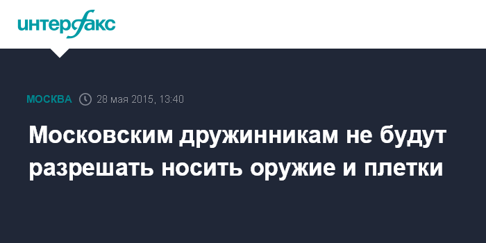 Москва. 28 мая. INTERFAX.RU - Участники Московской городской народной дружины не должны носить оружие, даже если это казаки, им также не разрешается носить плетки, заявил руководитель столичного департамента региональной безопасности и противодействия коррупции Алексей Майоров.