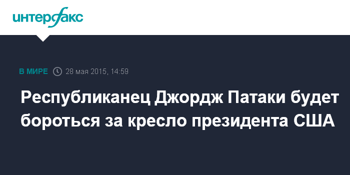 Москва. 28 мая. INTERFAX.RU - Бывший губернатор штата Нью-Йорк Джордж Патаки объявил о своем участии в борьбе за пост президента США, сообщает в четверг агентство Bloomberg.