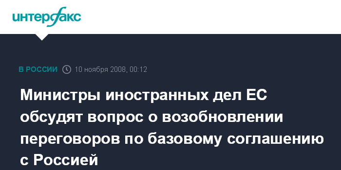 Переговоры по новому базовому соглашению с Россией были приостановлены 1 сентября. В ЕС решили, что их можно будет возобновить, когда российские войска покинут территорию Грузии.