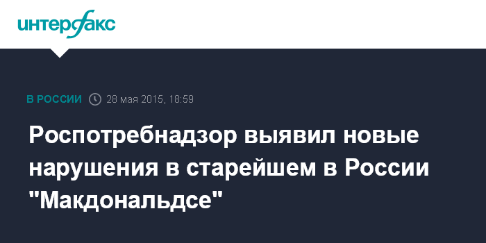 В минувшем году Роспотребнадзор инициировал ряд проверок ресторанов "Макдоналдс". Работа ряда фастфудов, в том числе первого российского ресторана сети, открывшегося в Москве на Пушкинской площади в 1990 году, была приостановлена. Роспотребнадзор также возбудил ряд дел об административных правонарушениях и оштрафовал несколько ресторанов.
