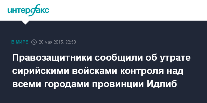 Западные СМИ отмечают, что теперь сирийские правительственные войска не контролируют ни одного города в Идлибе. Армия Сирии в этой провинции удерживает лишь несколько небольших населенных шиитами населенных пунктов, ряд КПП и военный аэродром.
