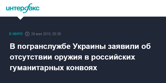 Москва. 29 мая. INTERFAX.RU - Украинские пограничники не находили оружия в российских гуманитарных конвоях, заявил, по сообщению интернет-издания "Украинская правда", председатель Государственной пограничной службы Виктор Назаренко в эфире "5 канала" в четверг вечером.